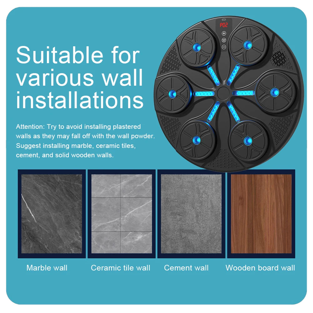 Perfect for home, gym, or studio, this wall-mounted trainer helps improve reflexes, agility, and stamina — all while having fun to the beat.